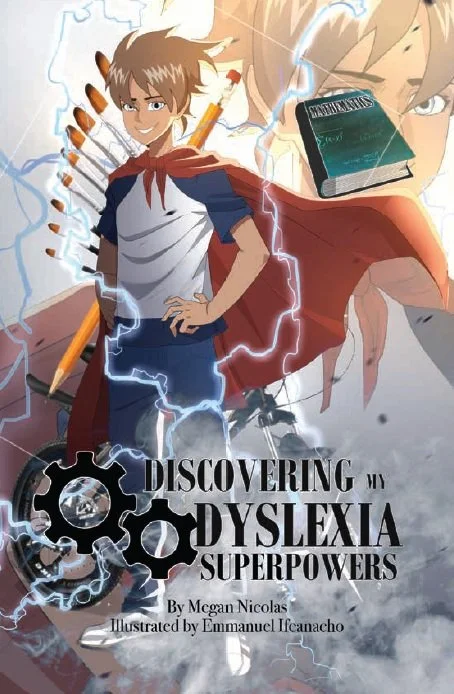 Discovering My Dyslexia Superpowers was written to fill a gap in dyslexia literature. When looking for a children's book about dyslexia at their local library, author Megan Nicolas and her children found one that focused on "struggles" and difficulties. Her children said “We should write an encouraging book for kids about dyslexia.” So, they did!